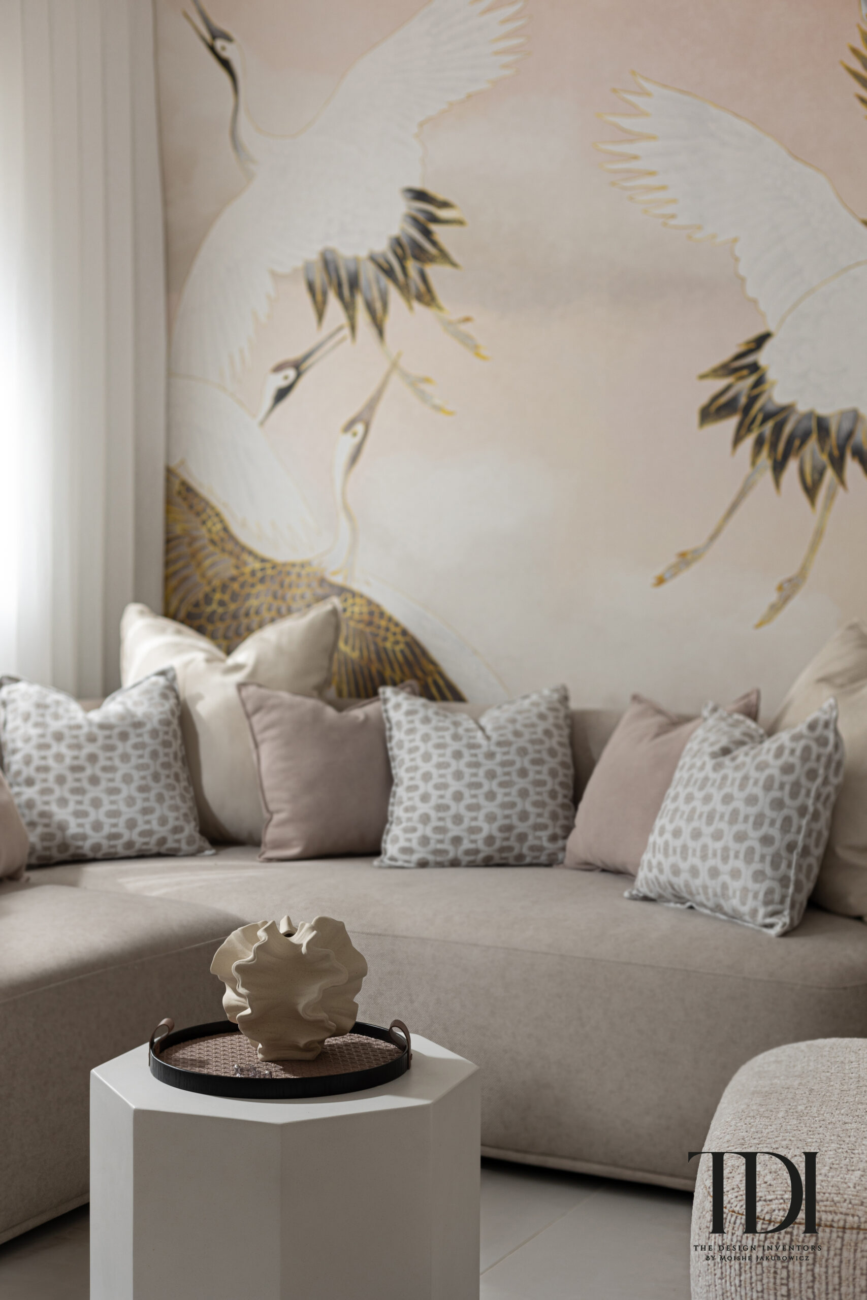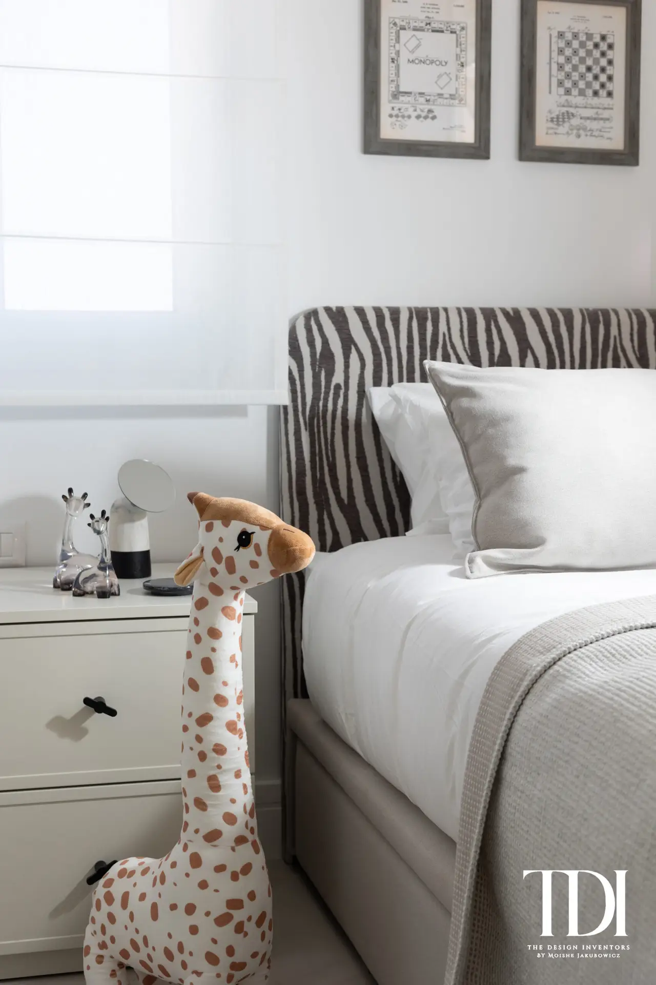 דוגמאות שובבות וצורות זורמות מוסיפות נגיעה קלילה ומלאת קסם, בעוד טקסטורות מלטפות וניגודים מחושבים מעניקים לכל חלל תחושה של מקום חי אך מעודן.