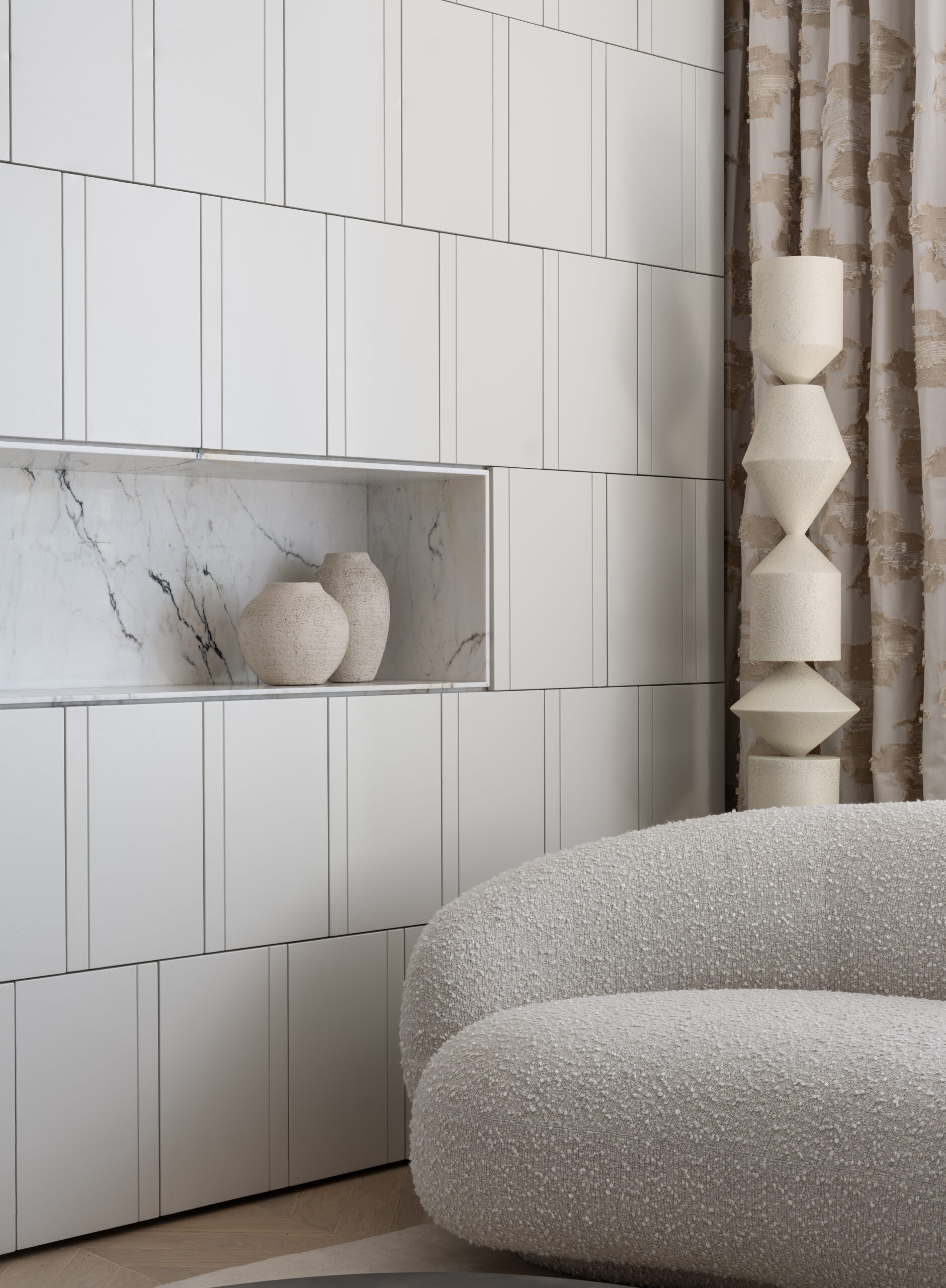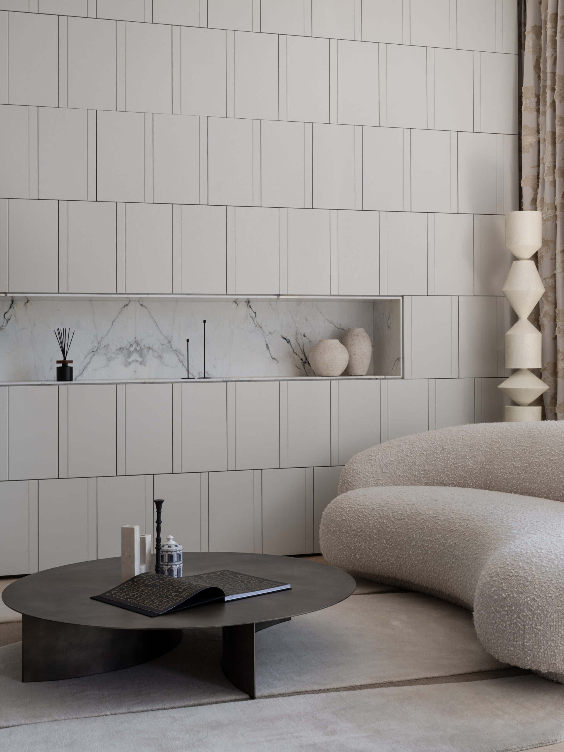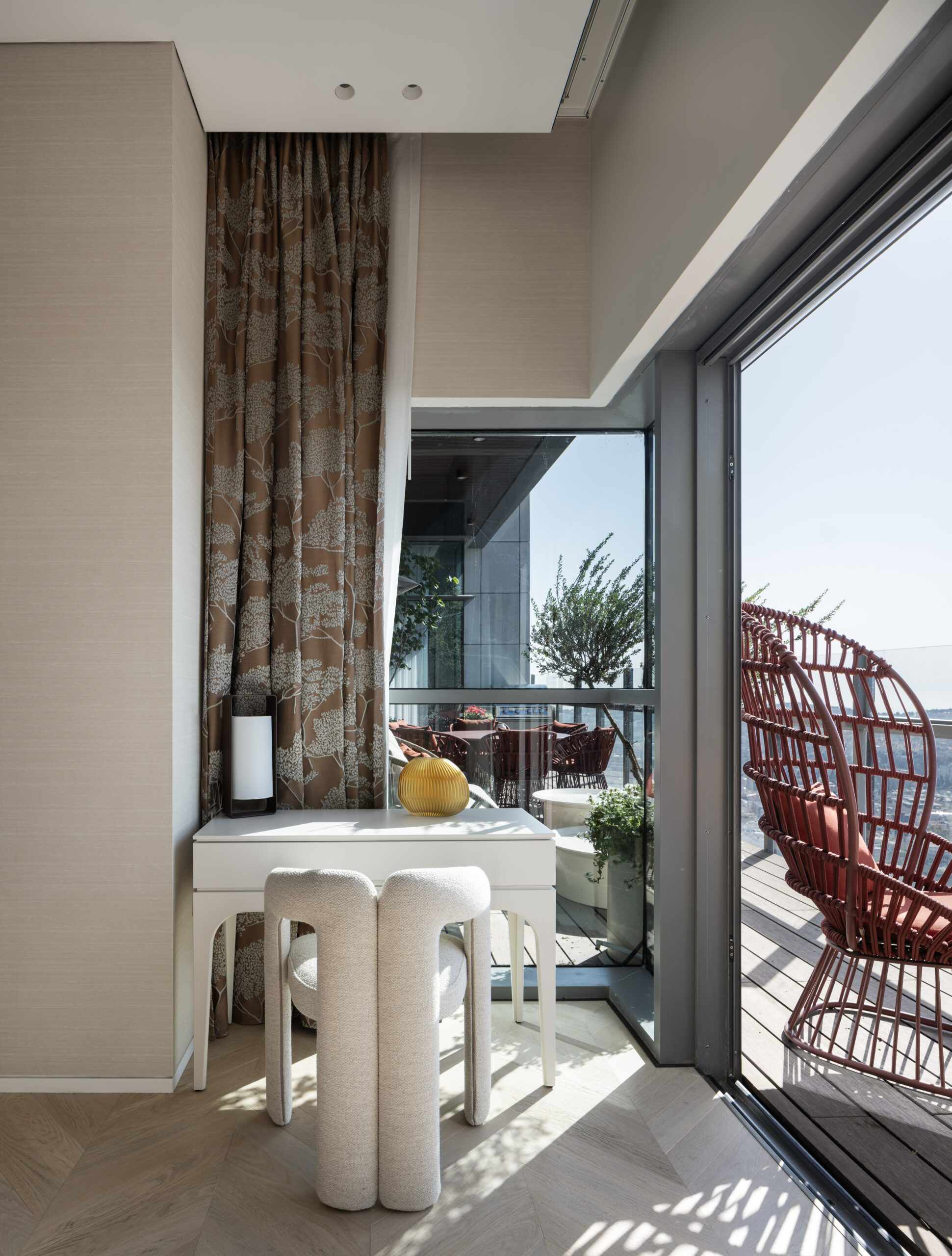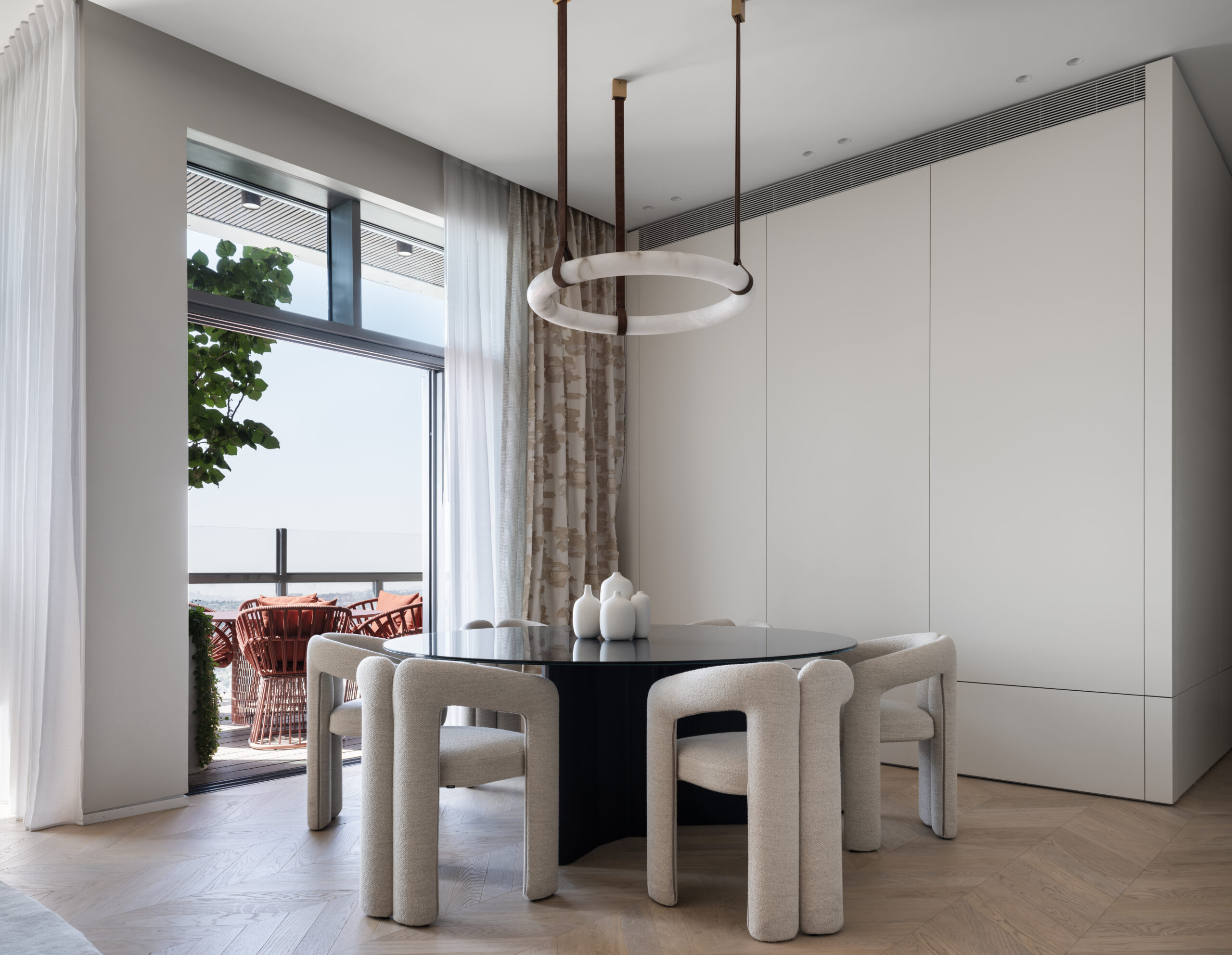 החלל הפנימי מתאפיין בתקרה גבוהה המעצימה את תחושת העוצמה והאור. העיצוב שומר על קווים נקיים, אלגנטיים ומדויקים, ומשלב ריהוט יוקרתי שנבחר בקפידה. כל פרט ופרט משקף איכות בלתי מתפשרת, עבודת גימור מוקפדת וסטנדרט על־זמני של יוקרה ונינוחות.